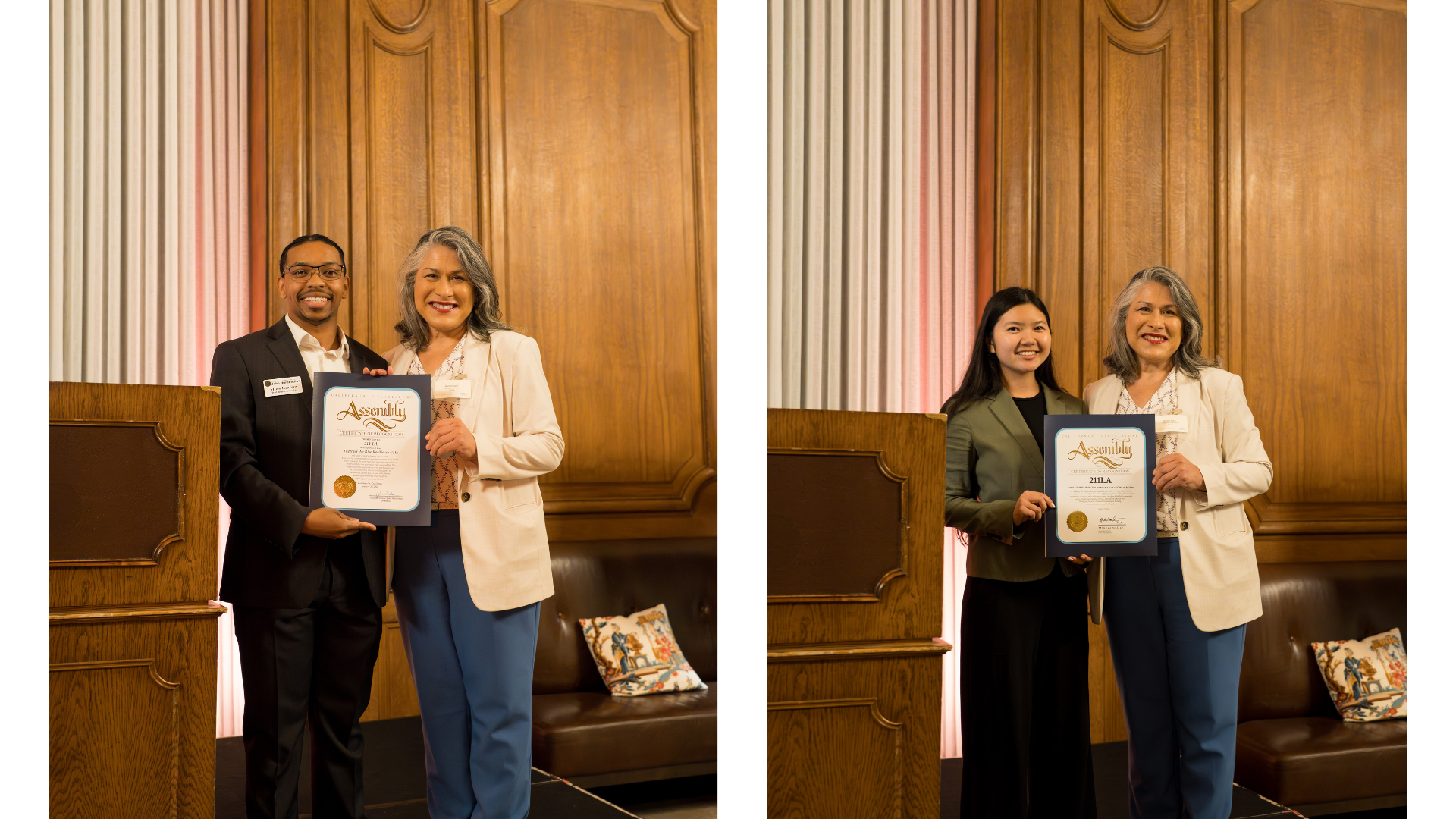 The evening began with a moment of reflection on the lasting impact of the wildfires and the collective response that followed. Our featured speaker, Miguel Santana, President and CEO of the California Community Foundation, joined us to mark the wildfire anniversary and recognize the progress made in recovery efforts. The event also included the presentation of two Certificates of Recognition to 211 LA from the offices of Assemblymembers Mark Gonzalez and John Harabedian.